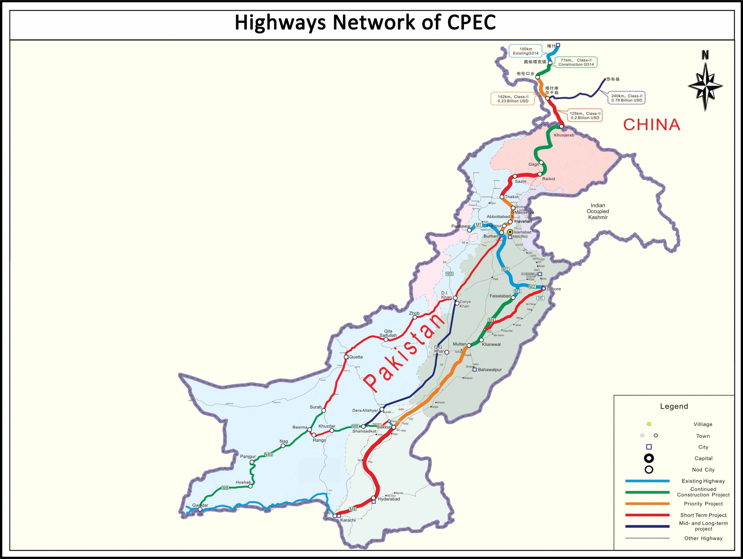 The CPEC also includes 3,000-kilometer network of roads from Gwadar port to Kashgar city. This project will also upgrade the silk route and Karakoram highway which is 1300 Km long.
