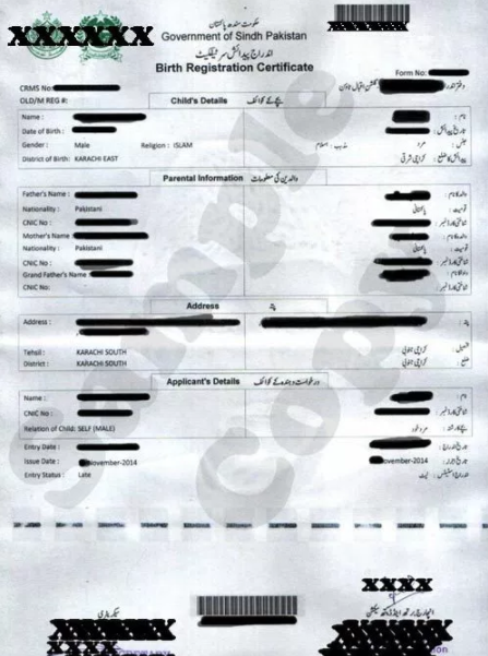 NADRA Birth Certificate Sample